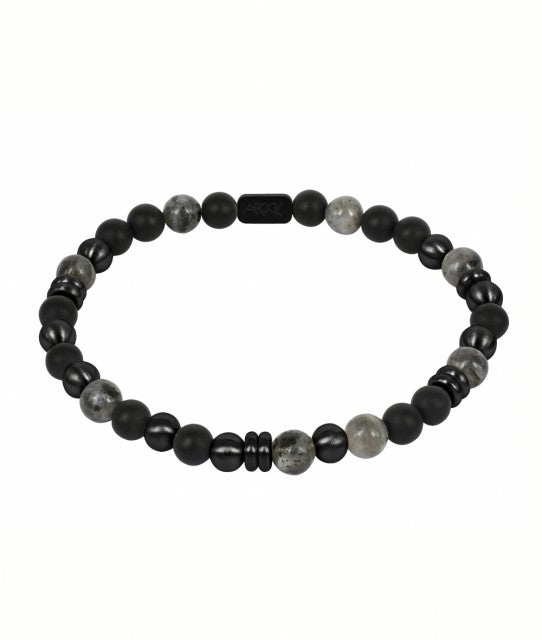 Kulearmbånd av miksede stener, "Emperor", i Grå nyanser og kuler i matt 14k forgylt stål.Diameter på kulene: 6 mmLengde: 19,5 mm, ElastisktFarge: Grå / Forgylt, Grønn, Brun, Brun/SvartMateriale Stener: Emperor + Stål
