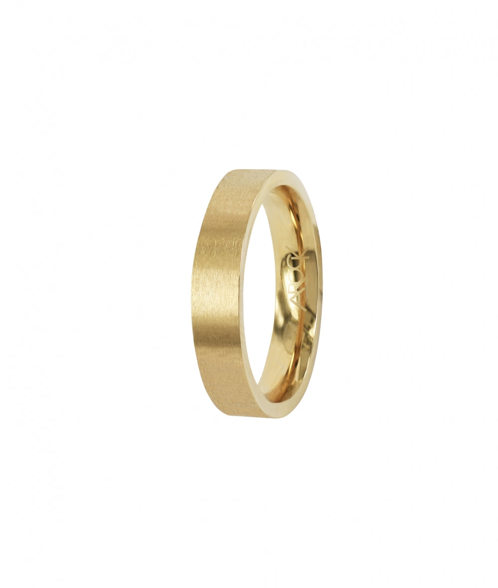 Matt, slett ring i stål. Behageleg med mjuk avrunda innside.