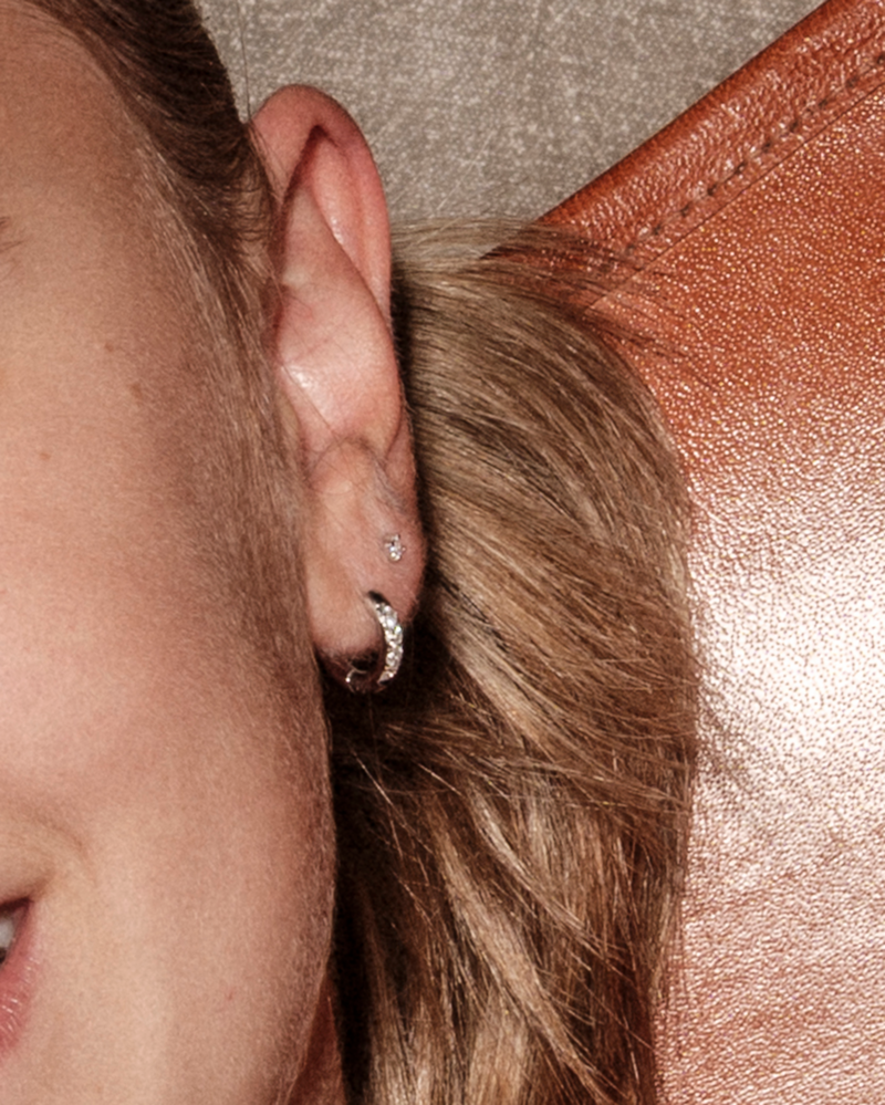 Ørepynt i stål med tre stk cubic zirkonia. Velg mellom stål og forgylt.