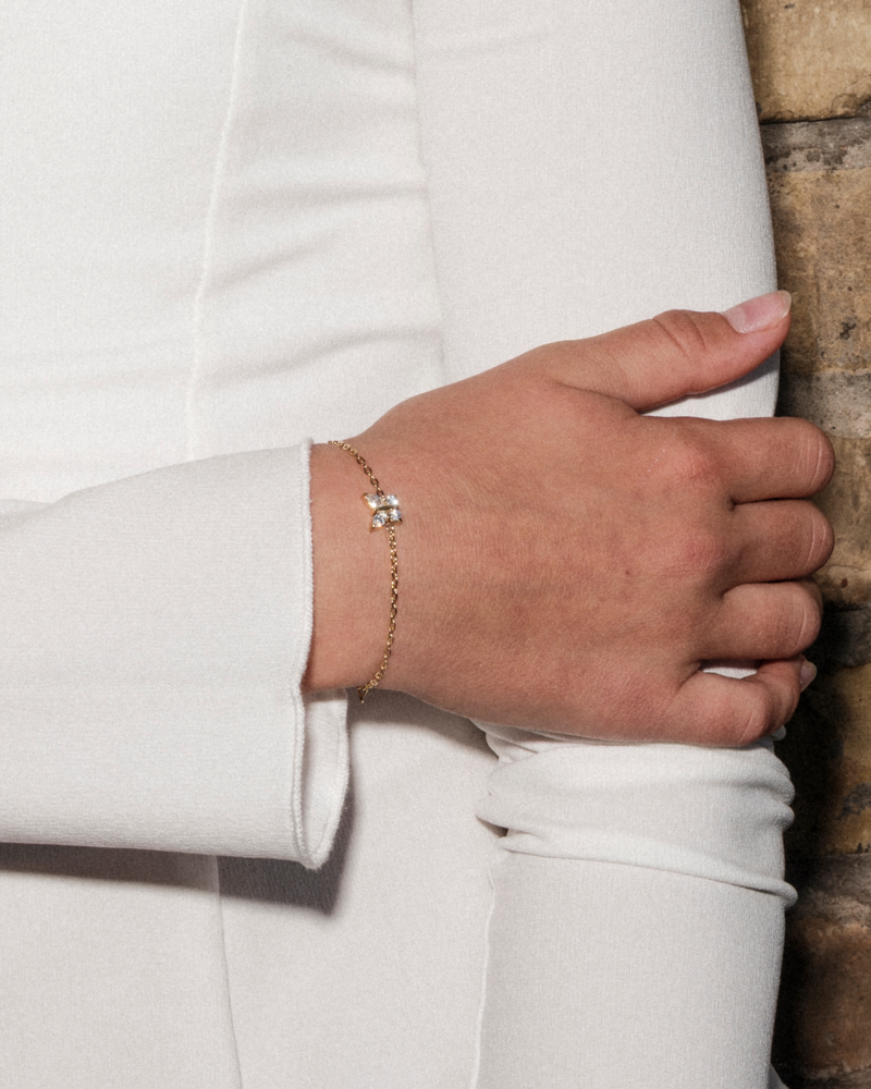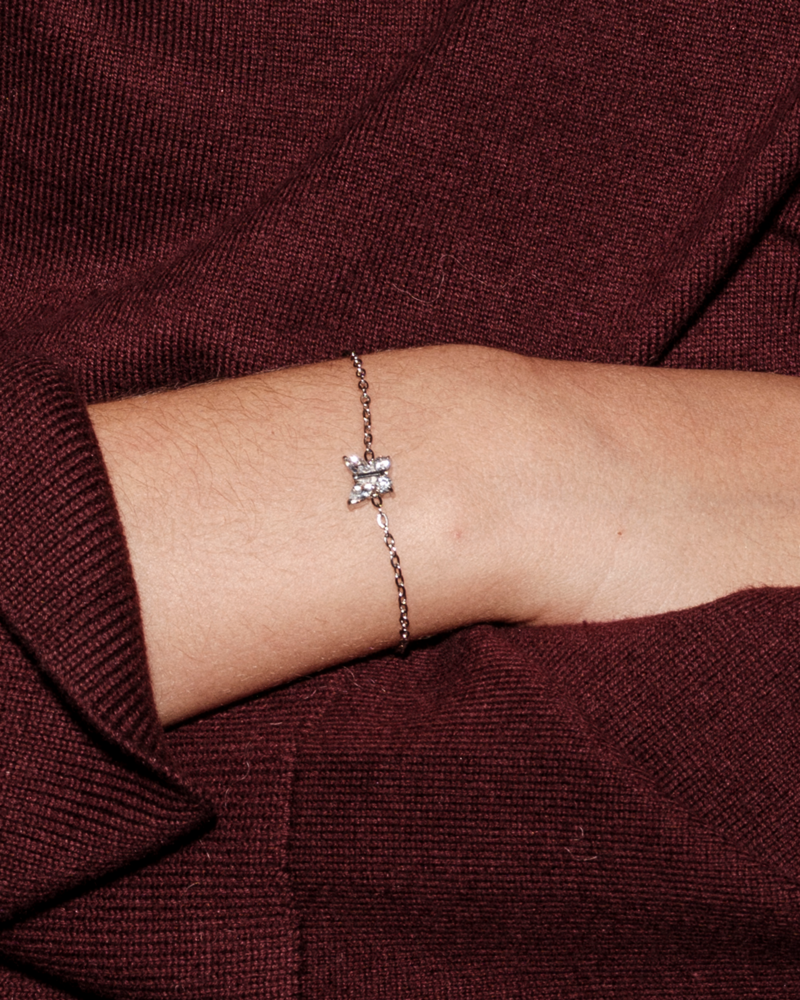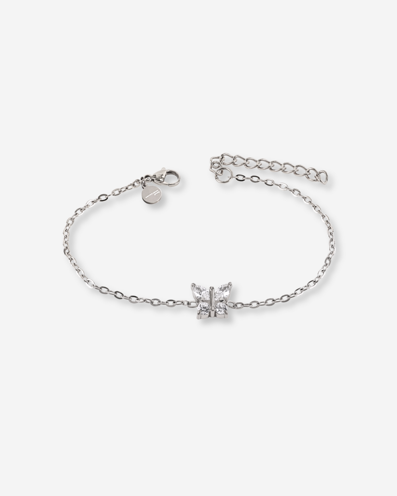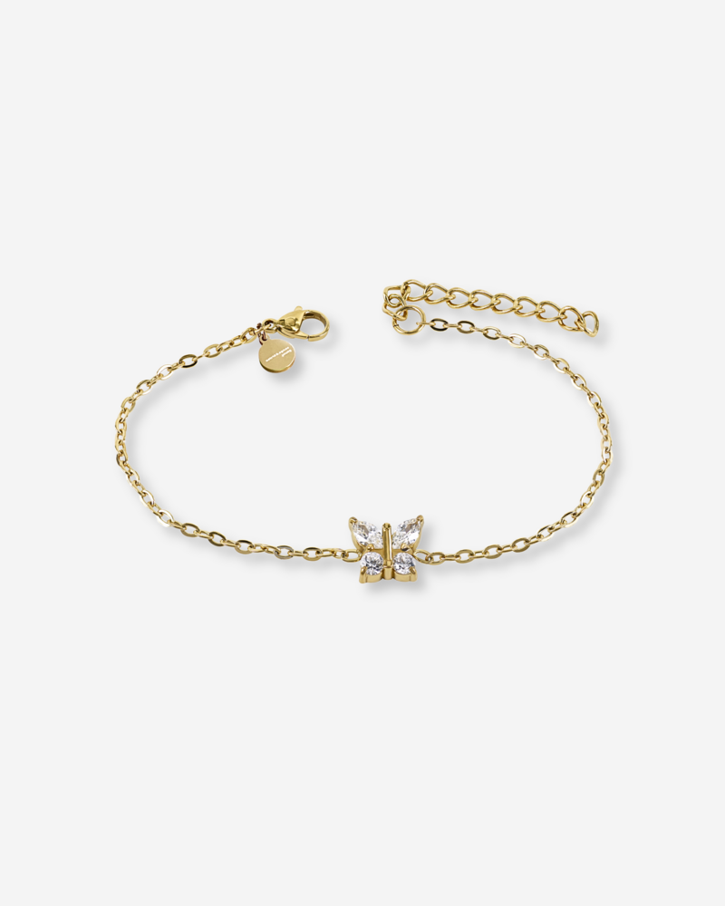 Kort, nett armlenkje med ein nydeleg sommarfugl med steinar. Smykket er laga for barn frå 5-12 år.
