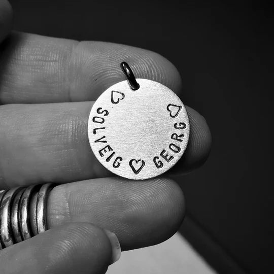 Anheng i sølv med eigen tekst. Velg kor mange ord du vil ha og skriv inn teksten i tekstboksen. Deretter veljer du om du vil ha lyst eller oksidert. Desse er også fine ilag med Knottane og Miniknottane våre eller andre små anheng ein har frå før. Dersom orda du skriv er namn, så brukar vi å setje eit lite hjarte mellom kvart namn.