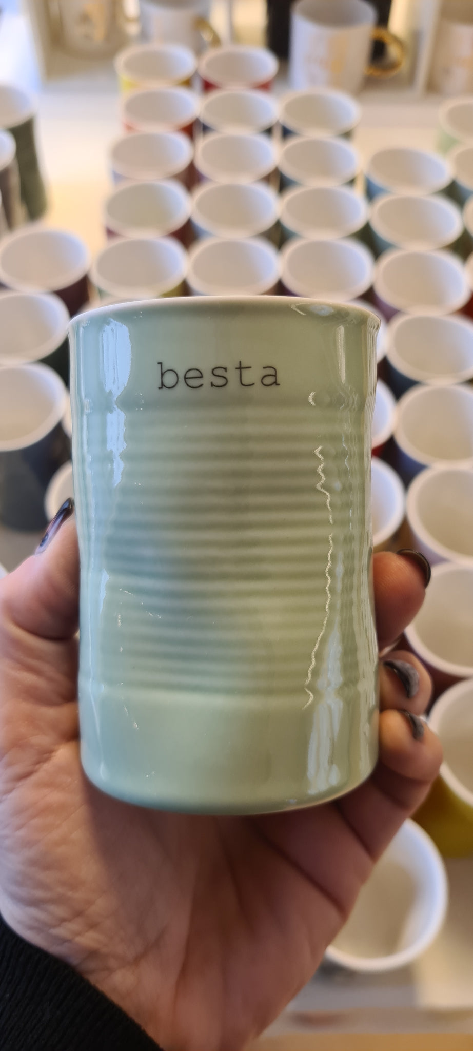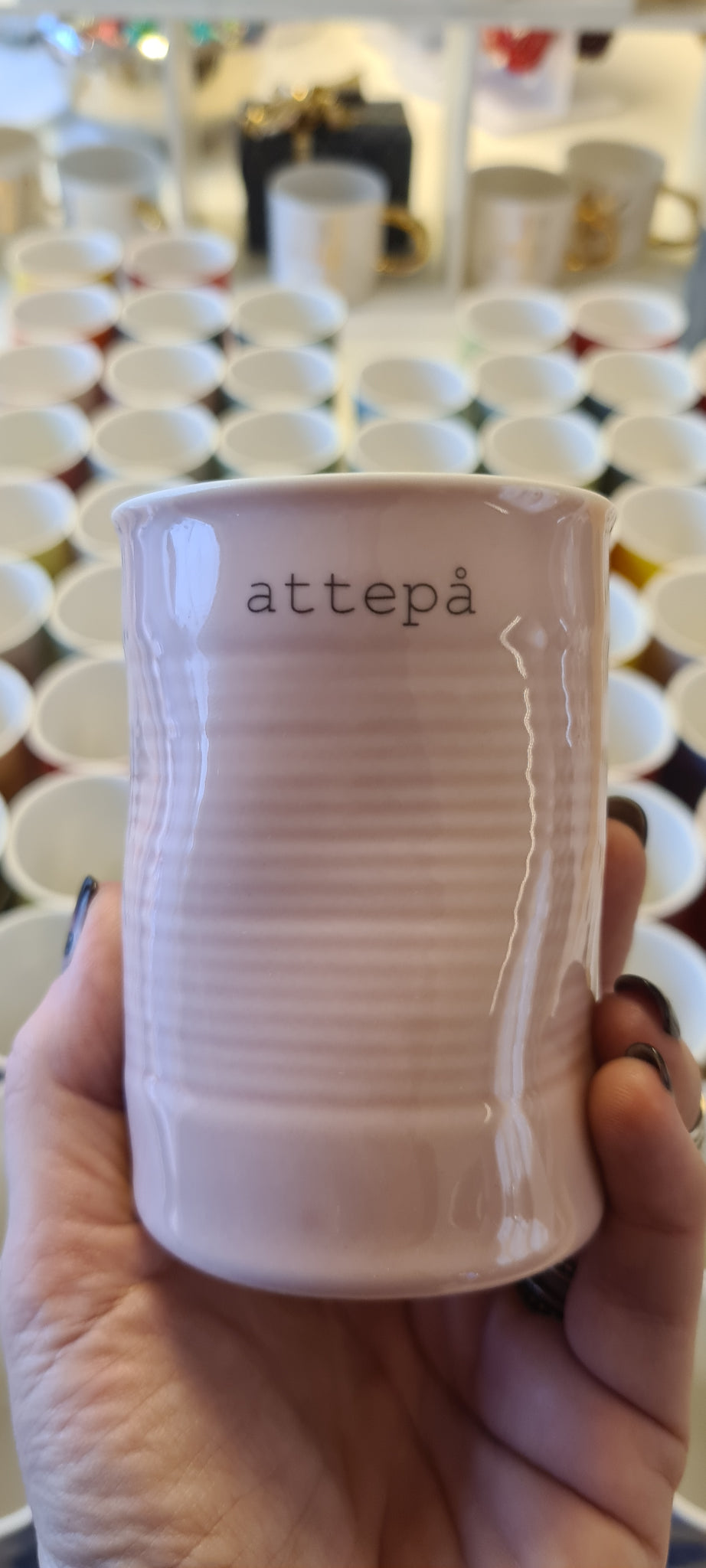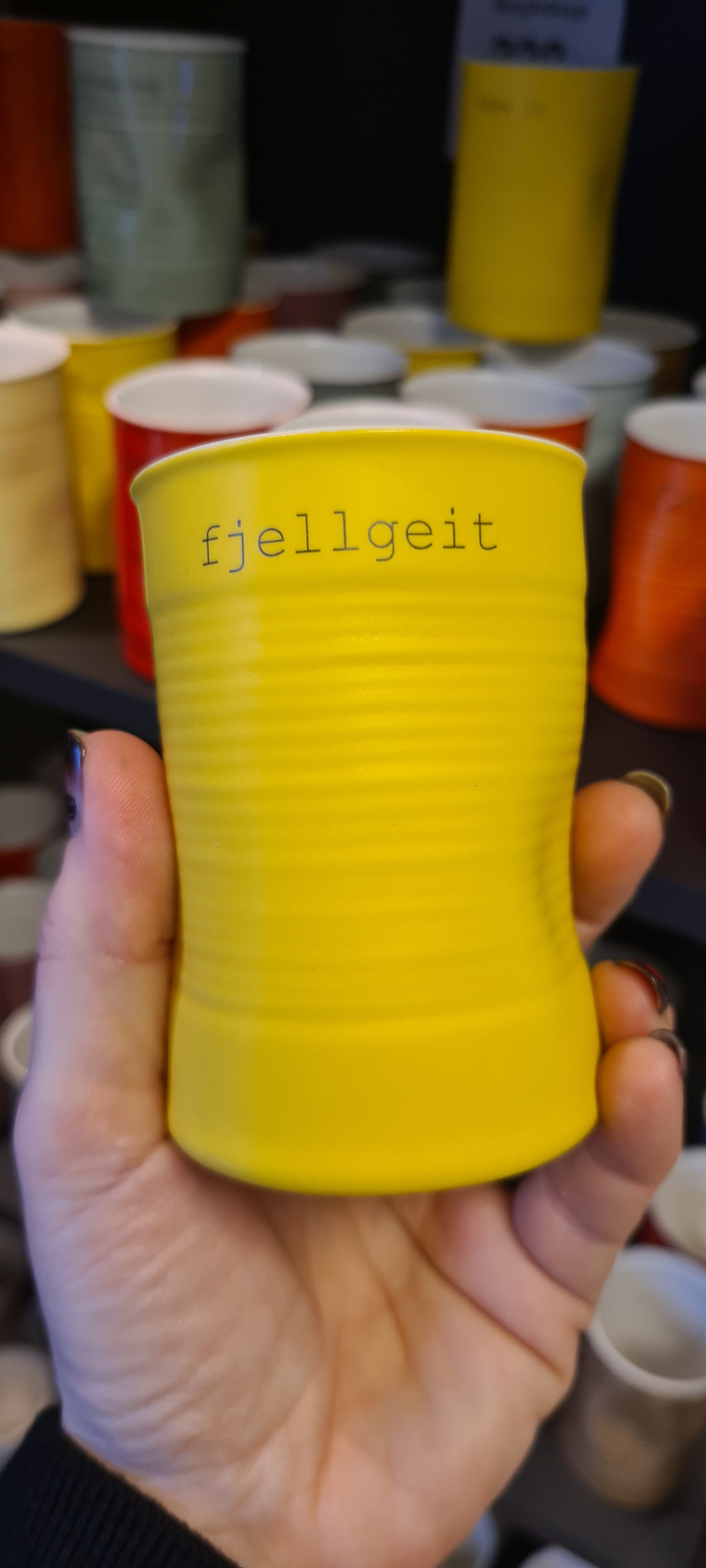 Desse kjekke koppane er laga av AC Design på Bærums Verk. Vi får dei med våre eigne, nynorske ord og uttrykk på i alle verdas fargar. No har vi lagt inn nokre av dei mest populære tekstane, men sia desse fyk ut dørene er det vanskelig å halde styr på alle fargane... Skriv i kommentarfeltet kva farge du kan tenkje deg og så tek vi kontakt dersom vi ikkje har akkurat den. Send oss gjerne ei melding på Facebook, då det er enkelt å sende bilde der. :o)