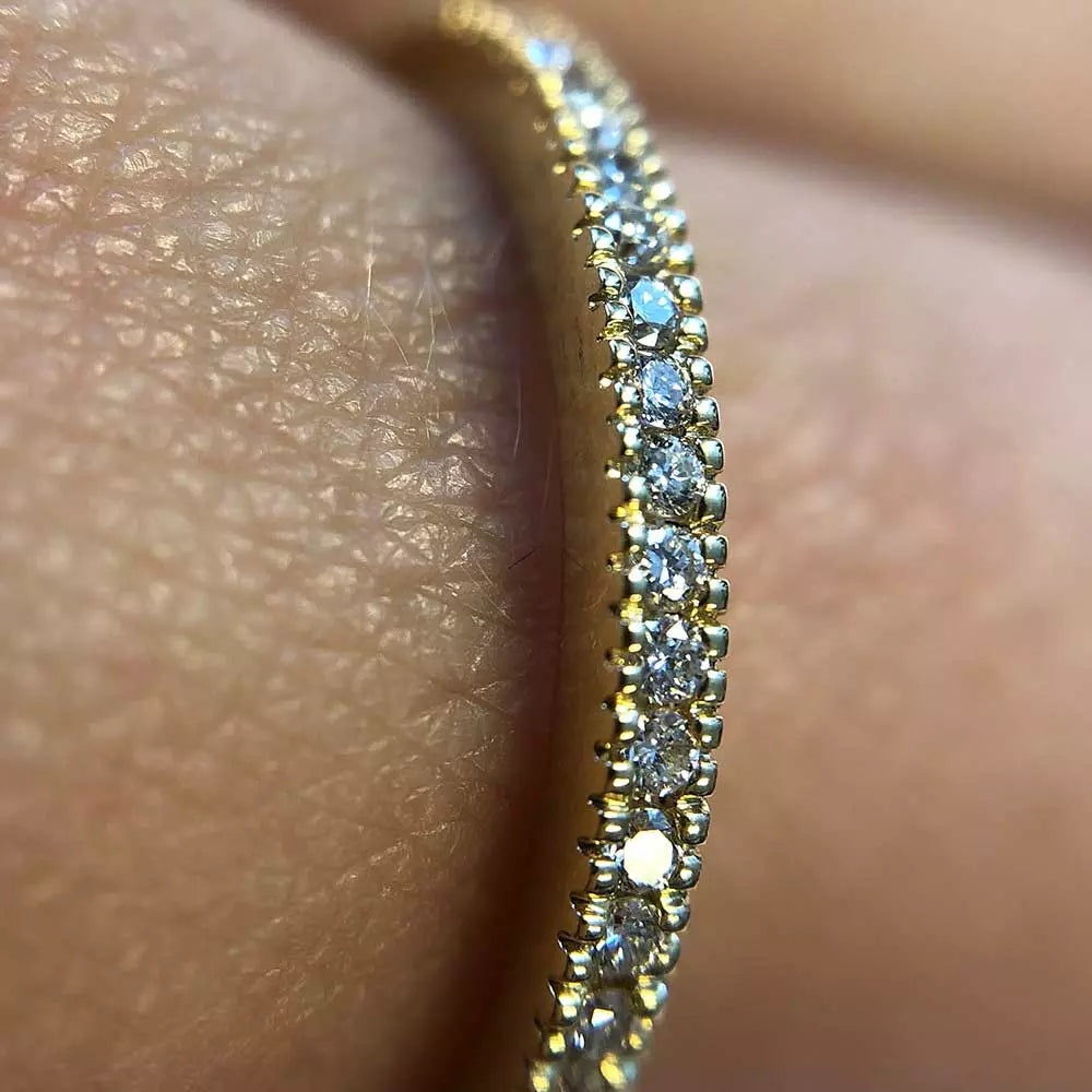Sublime ring i gult gull med diamantar TW/SI 0,13 ct. Veldig fin å bruke saman med andre ringar. Denne er i str. 54, dersom vi skal bestille i andre storleikar må ein rekne med eit par veker før vi får den inn.