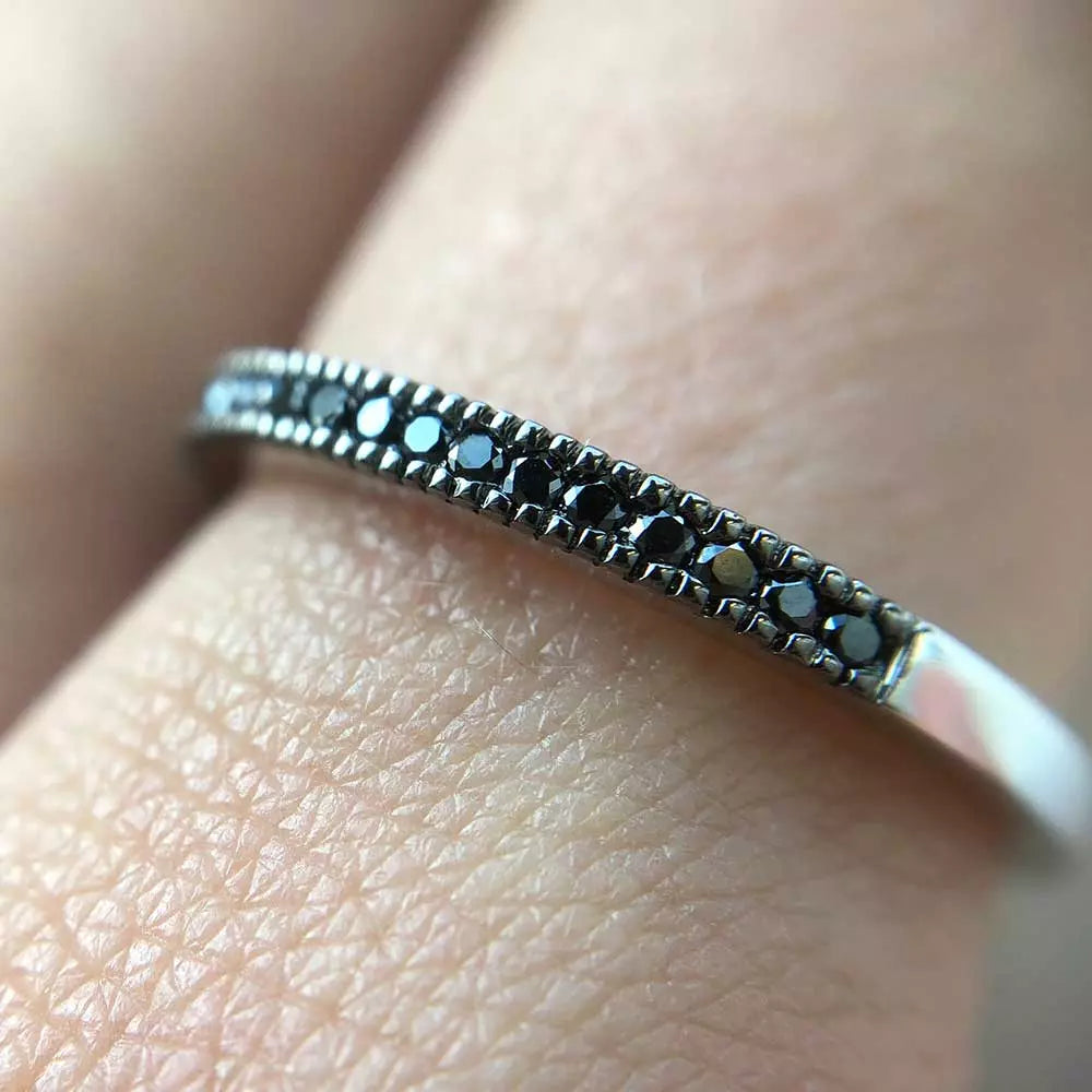 Sublime ring i kvitt gull med svarte diamantar 0,14 ct. Veldig fin å bruke saman med andre ringar. Denne er i str. 52, dersom vi skal bestille i andre storleikar må ein rekne med eit par veker før vi får den inn.