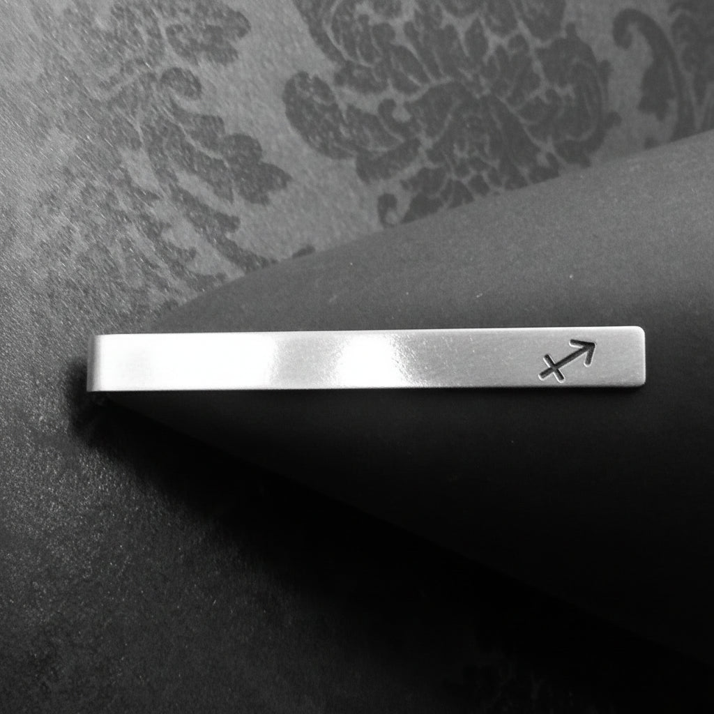 Slipsnål med stjerneteikn-symbol. 6 mm brei i 925 sølv med handstempla symbol, oksidert med matta overflate.