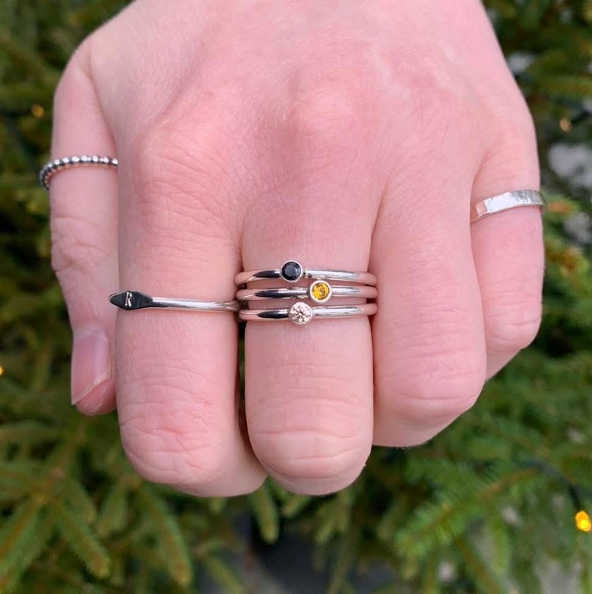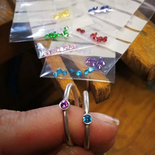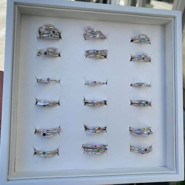 Enkel ring i 2 mm rund tråd med 3 mm, farga cubic zirkonia. No også med ekte peridot. Den vert laga i sølv og har ei blank overflate. Passar fint å ha saman med andre ringar. Velg kva farge du vil ha på steinen i din ring og velg ringstorleik. Veit du ikkje kva storleik du treng kan du finne det her.