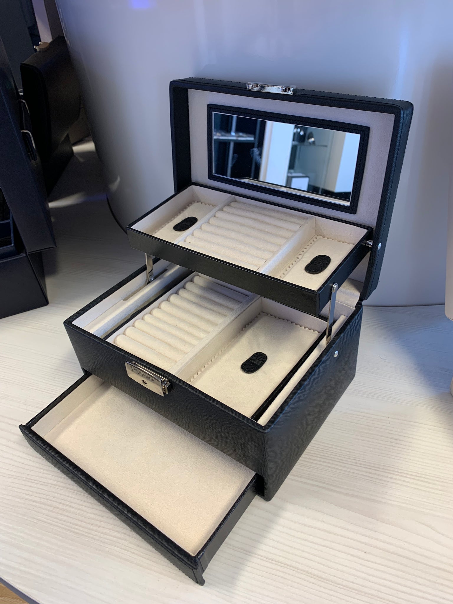 Svart smykkeskrin frå Rikter Svendsen. Finnast med to ulike fargar på innsida.